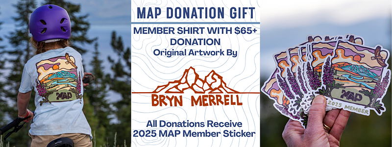Not only are all donations matched, but gifts of $65 or more can receive MAP's 2025 Membership Shirt with original artwork by Bryn Merrell! This t-shirt is available in youth and adult sizes, and MAP will follow up with all qualifying donors on donations, gifts, and sizes. All donations, regardless of size, will receive MAP's limited-edition membership sticker and a donation receipt by mail.