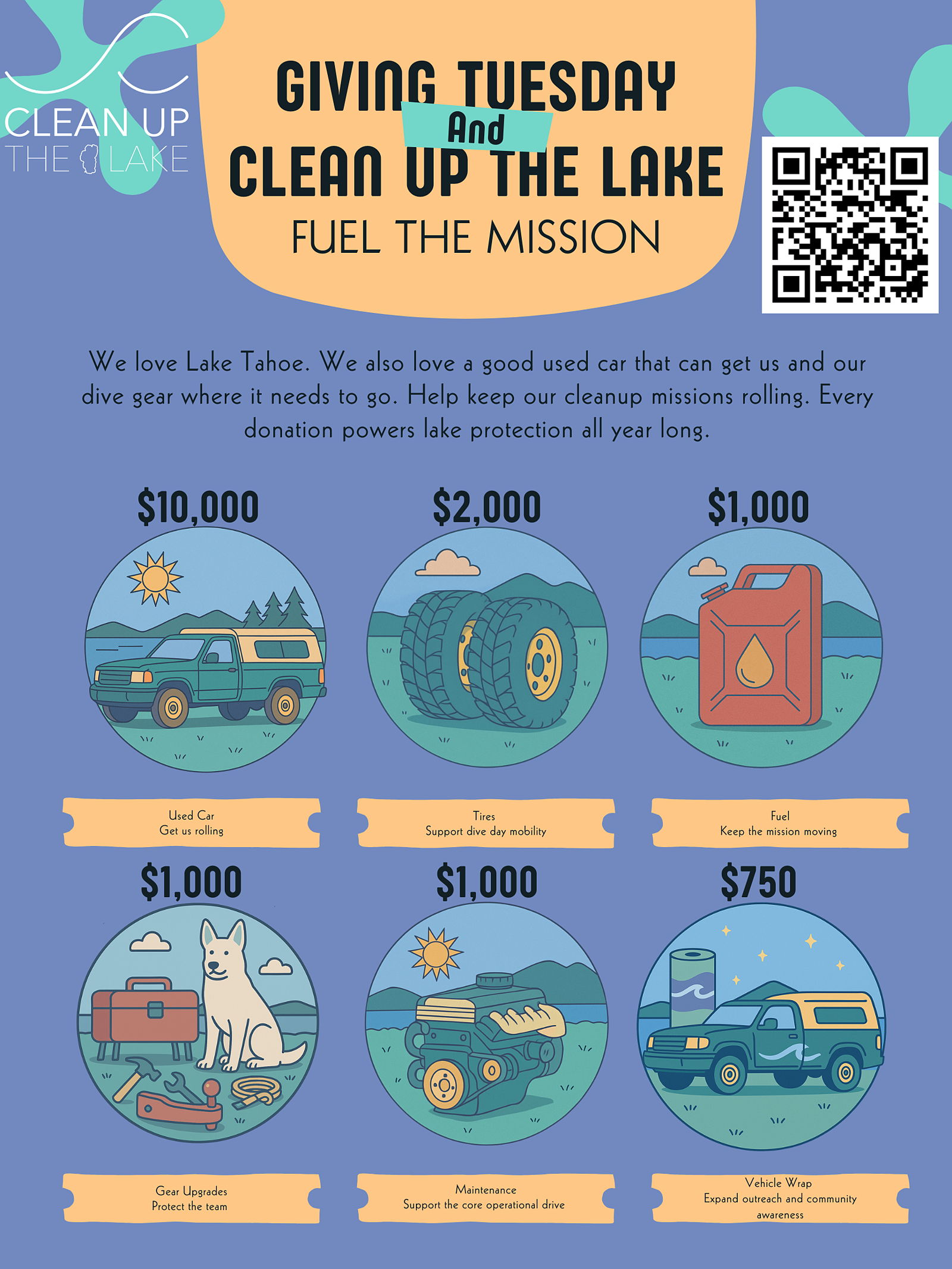 Clean Up the LakeFuel the Mission supports a new vehicle that keeps our dive team cleaning Lake Tahoe year round.